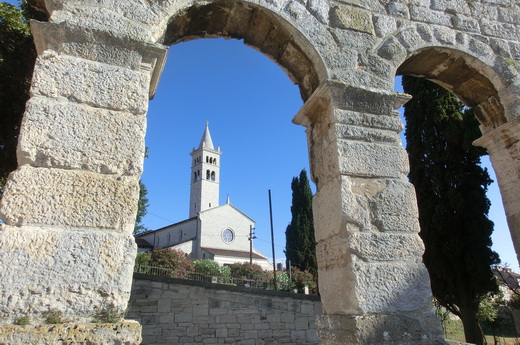 V neděli se vydáváme na nejbližší pláž od vstupu - pláž Pinižule. Během chvilky se pláž zaplnila spoustou lidí, zdá se nám také nejšpinavější. Plusem je parkování a bar ve stínu borovic. Nachází se zde také krátká dinosauří stezka, na jejímž konci jsou ve vápencových plotnách zvýrazněné stopy dinosaurů. Vzhledem k množství lidí brzy tuto pláž opouštíme a v odpoledních hodinách jedeme do Puly. Do města vstupujeme Zlatou bránou, procházíme přes náměstí s radnicí a Augustovým chrámem, kolem katerdály až k římskému amfiteátru. Amfiteátr je opravdu zachovalý a všem doporučujeme jeho návštěvu. Při zpáteční cestě jsme ještě vystoupali na pulský hrad a shlédli chodníkovou mozailku. Náš pobyt v Pule jsme zakončili pizzou a pivem v místní restauraci.