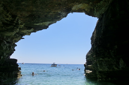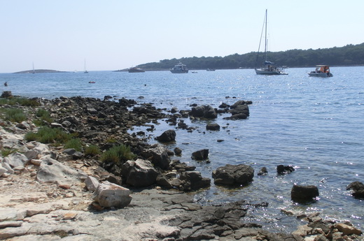 Ve středu zkoušíme pláž na opačné straně poloostrova, odkud vane většinou vítr a dosud jsme se sem neodvážili. Vybrali jssi si zátoku Malý Portić, ale špatný přístup a plno lidí nás vyhnalo na Velký Portić. Nejmělčí zátoka nabízela o 2 st. teplejší vodu a k vidění vzácnou mušli kyjovkou šupinatou.